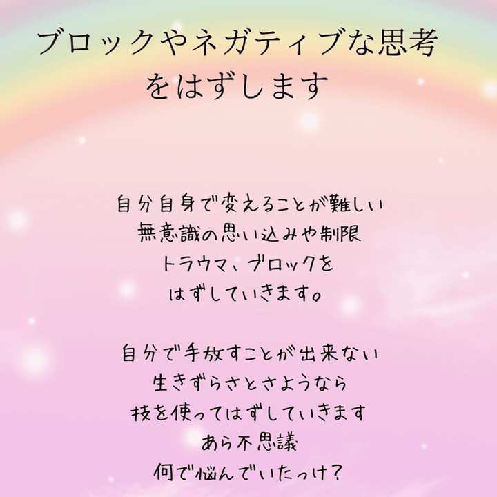 ネガティブな思考、ブロックになっていることの取り外し 20分 \3000
